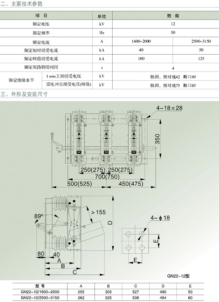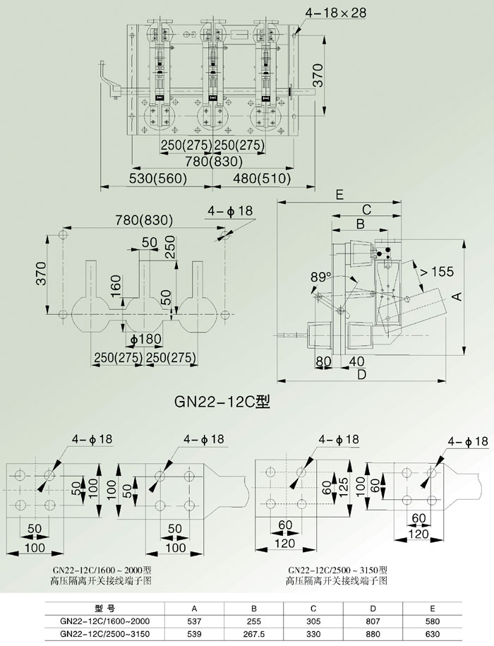 GN22-12(C)大电流产内高压隔离开关,适用于额定电压10KV,三相交流50HZ,电力系统中高压开关设备作为有电压无负载的情况下分合电路之用。开关结构设计新颖、合理、独具一格。它采用了两步动作的锁紧方式,使开关动热稳定性能优异,操作力小。它采用了环氧树脂和绝缘子及刷镀银等新材料新工艺,使开关导电性能好,体积小,质量轻。它的出线端子便于与真空断路器、油断路器连接,可缩小开关柜体积,减少过渡接头,降低成本。