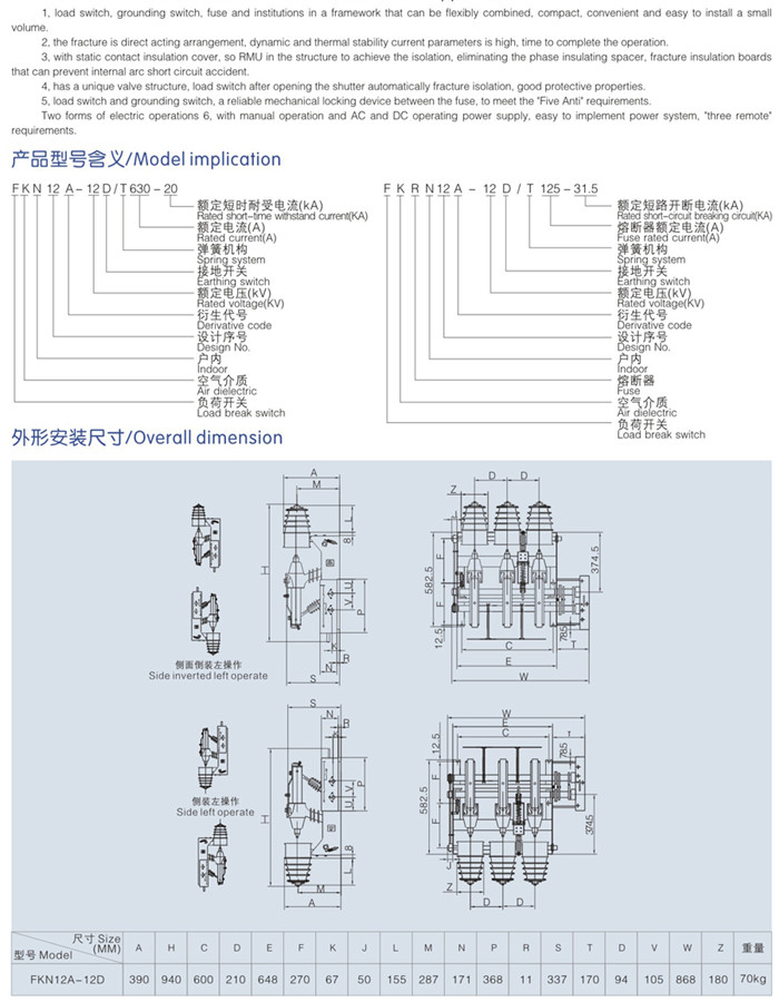 FKN12-12RD户内压气式负荷开关及熔断器组合电器
