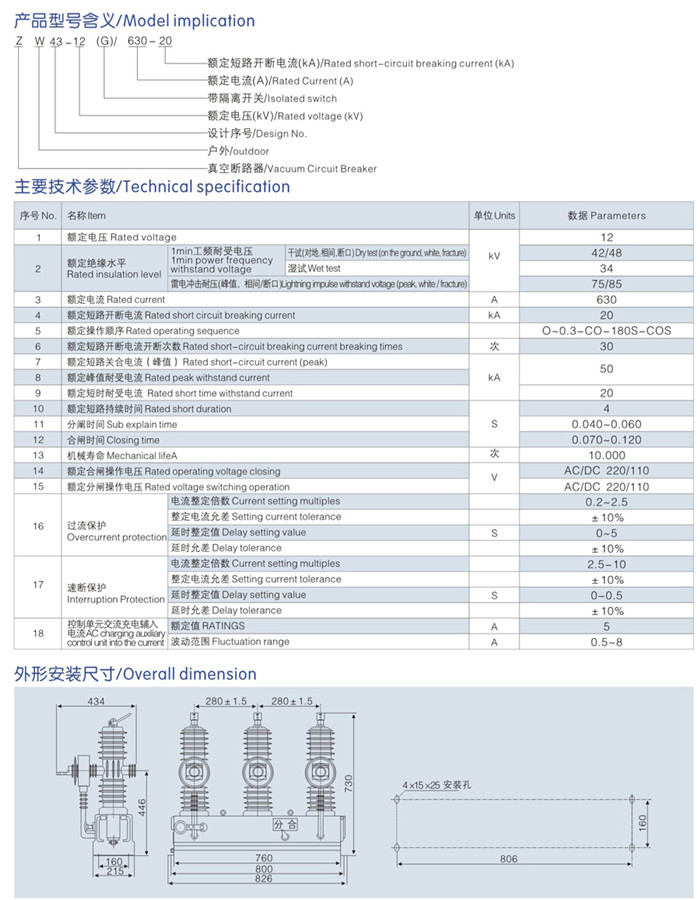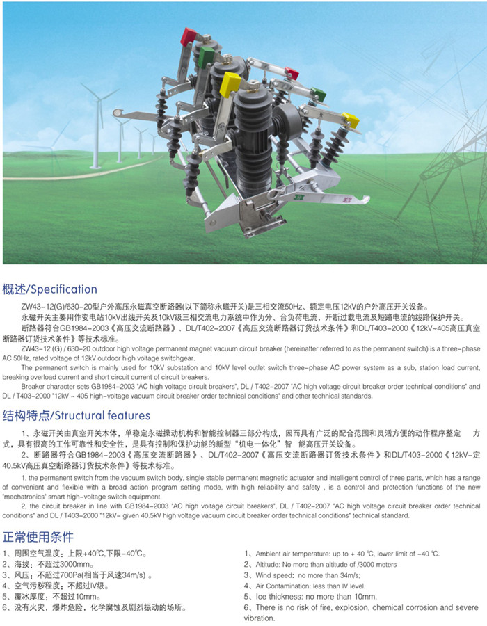 ZW43-12(G) / 630-20户外高压永磁真空断路器
