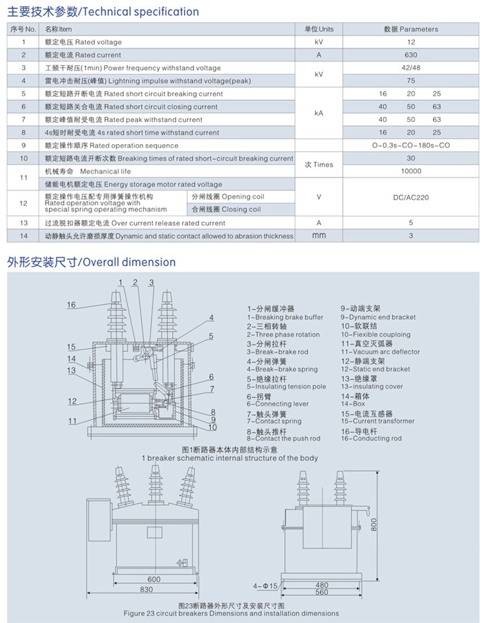 户内高压真空断路器