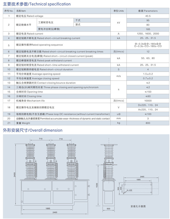 ZW7-40.5户外高压真空断路器