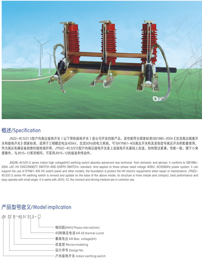JN22-40.5 /31.5户内高压接地开关