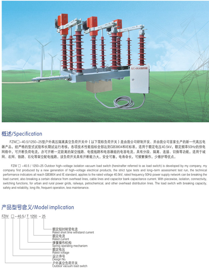 FZW口-40.5户外高压隔离真空负荷开关